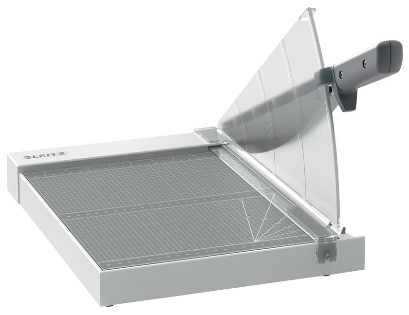 Den tydliga, manuella pappersklämman gör att du kan se knivbladets skärlinje för fullständig noggrannhet varje gång, medan det ergonomiska handtaget garanterar bekväm och enkel skärning.