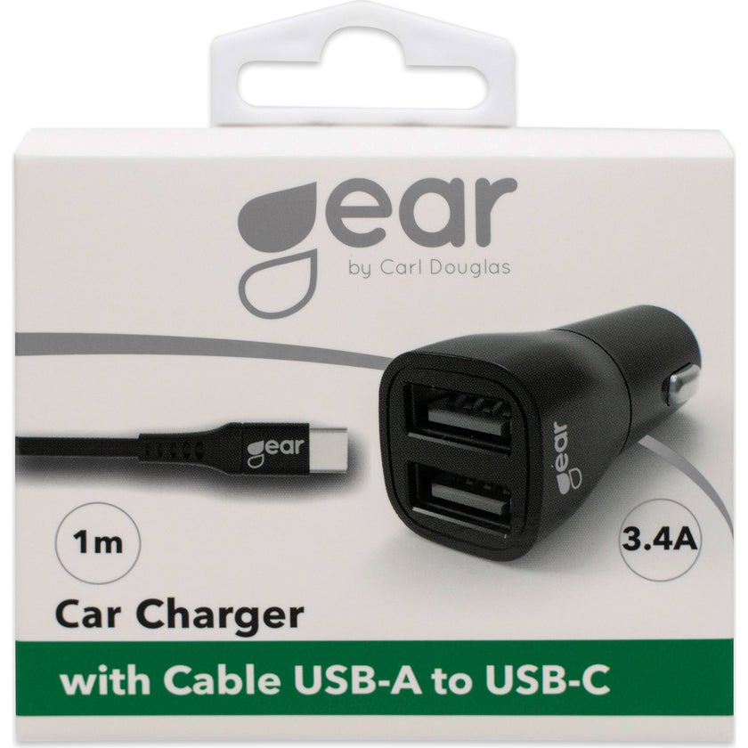 Laddare 12-24V 2xUSB 3.4A Svart USB-C 2.0 Gear