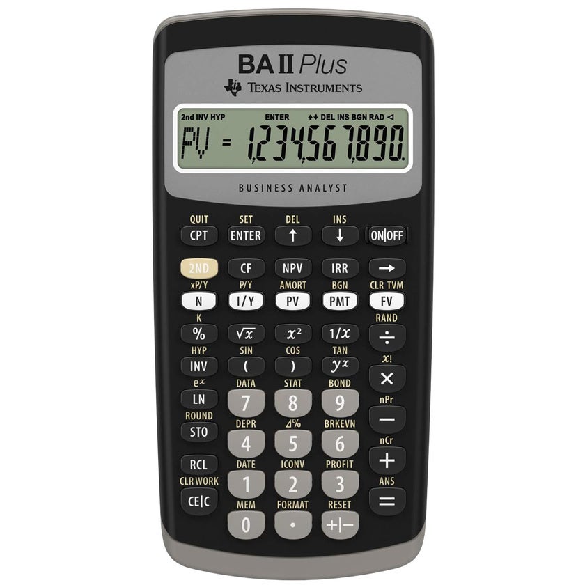 Texas Instruments BA II Plus är en lättanvänd men avancerad finansräknare, framtagen för både yrkesverksamma inom ekonomi och finans samt för studenter som vill ha ett kraftfullt hjälpmedel i studierna. Räknaren erbjuder ett brett utbud av finansiella, statistiska och matematiska funktioner, vilket gör den idealisk för allt från investering- och lånekalkyler till avancerade beräkningar i utbildning och arbetsliv. Idealisk för redovisning, ekonomi, finans, marknadsföring, matematik, fastigheter, naturvetenskap och statistik.
