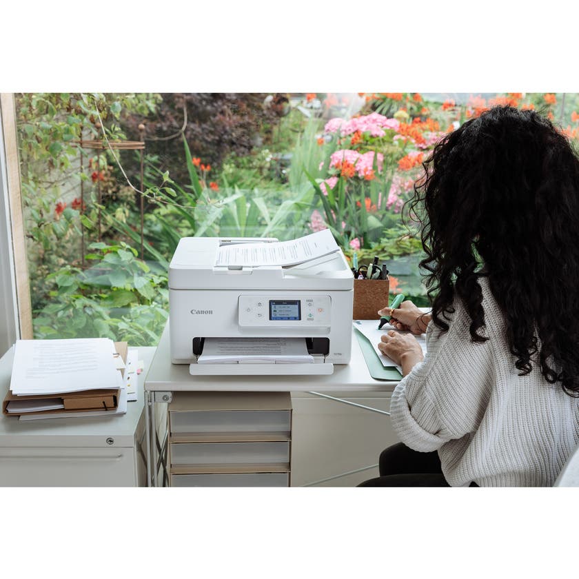 Den smarta, högkvalitativa 3-i-1 skrivaren Pixma TS7750i från Canon har automatisk dokumentmatare (ADF) och ger fantastiska utskrifter. Skriv ut, kopiera och skanna. Skrivaren har Wi-Fi och kan anslutas till molnet. Med användarvänliga kontroller och snabb prestanda av hög kvalitet passar denna slimmade allt-i-ett-skrivare enkelt in i alla miljöer.