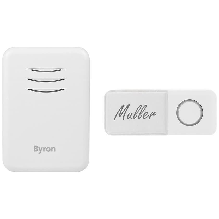 Byron DBY-22311NP – trådlös och batteridriven dörrklocka med upp till 150 meters räckvidd. Ta med dig mottagaren var du än befinner dig i hemmet. Oavsett om du är på vinden, i trädgården eller någon annanstans, missar du aldrig när någon ringer på dörren. Installationen är enkel och mottagaren kan placeras precis där du vill. Setet innehåller en robust, batteridriven inomhusmottagare och en vädertålig tryckknapp.